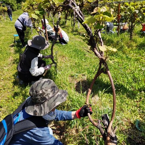 内 容:農業体験・・・ぶどうの樹の皮を草刈り鎌で剥ぎます。