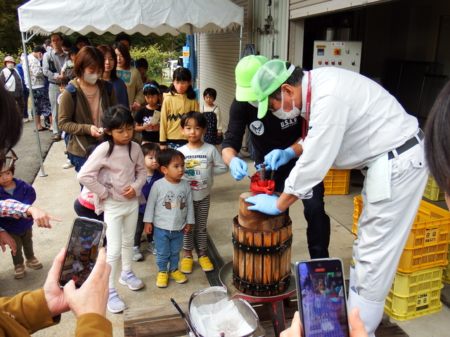 ★ちびっこ達のお楽しみ「ぶどう搾汁体験」は